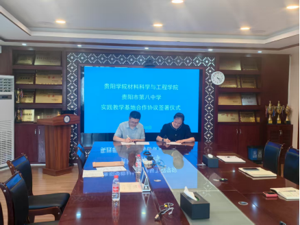 贵阳学院材料科学与工程学院院长罗军与贵阳八中校长冯华签署实践教学基地协议