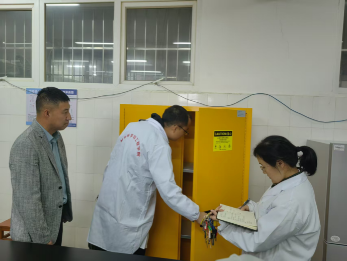 3月23日至28日,学院组织全体实验室管理人员对所辖实验室进行自查整改。检查主要围绕一、教学及科研实验室危化品使用及暂存情况,现场开柜检查存放、管理、使用、台账是否规范;二、要求各实验室使用危化品进行安全准入、实验流程、实验过程可能发生的安全隐患及相应应急措施的安全教育并留存相关安全培训教育资料。